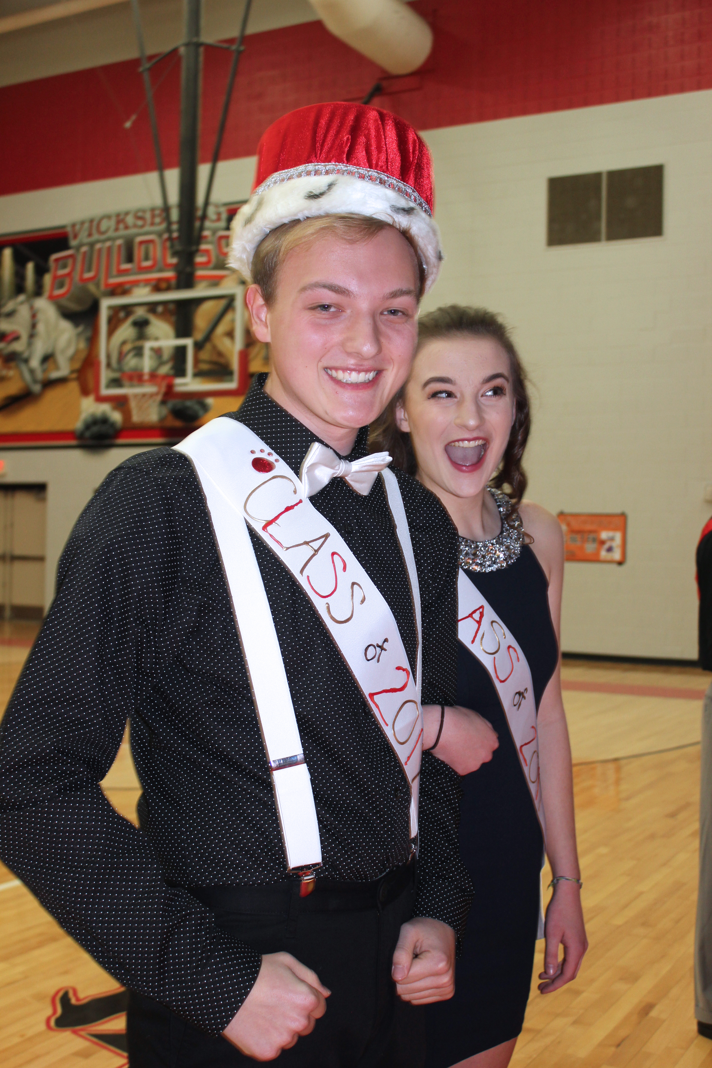 Basketball homecoming royalty for Vicksburg High School seniors are Adam Decker, king, with Carly DeBault. Sadie Martin, queen, with Trace Puckett.