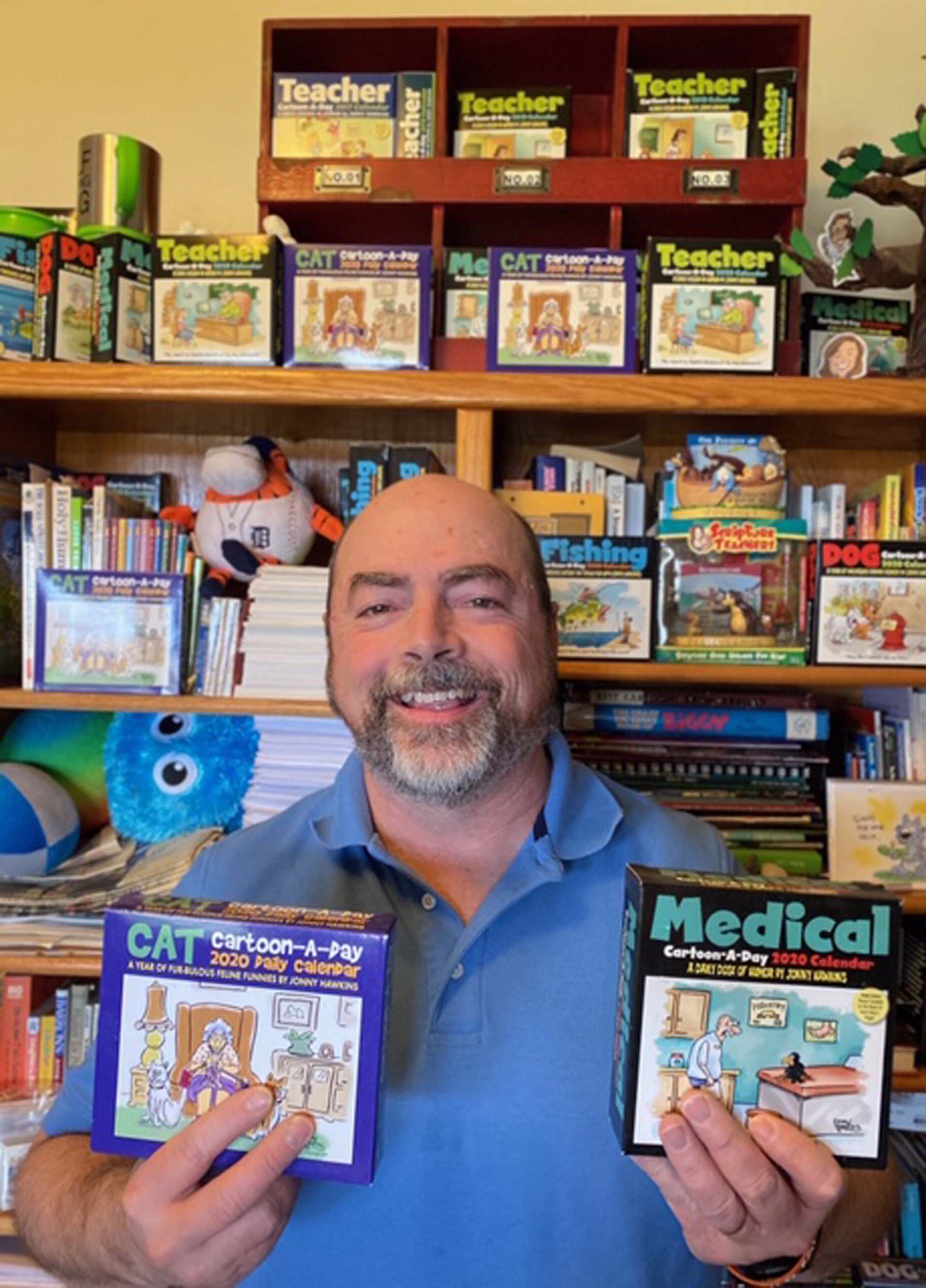 His success didn’t happen overnight. Jonny says it “took a long time to evolve and still has its ups and downs.” But since 1986, his work has appeared in over 900 publications, publications like Reader’s Digest, Parade magazine, Guideposts, Ranch Living and 76 “Chicken Soup for the Soul” books. He has drawn over 54,000 cartoons and has published 20 books. He has created 85 page-a-day cartoon calendars, most of them for the world’s leading calendar publisher, Andrews McMeel. One of those is Medical Cartoon-a-day calendar, now in its 19th year.
