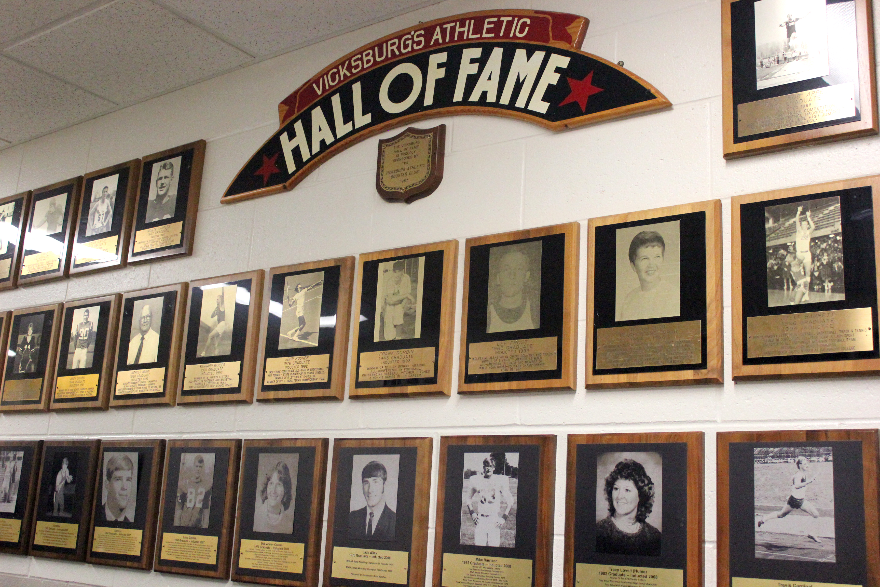 The Vicksburg’s Hall of Fame plaques are on the east wall corridor just outside the gymnasium.