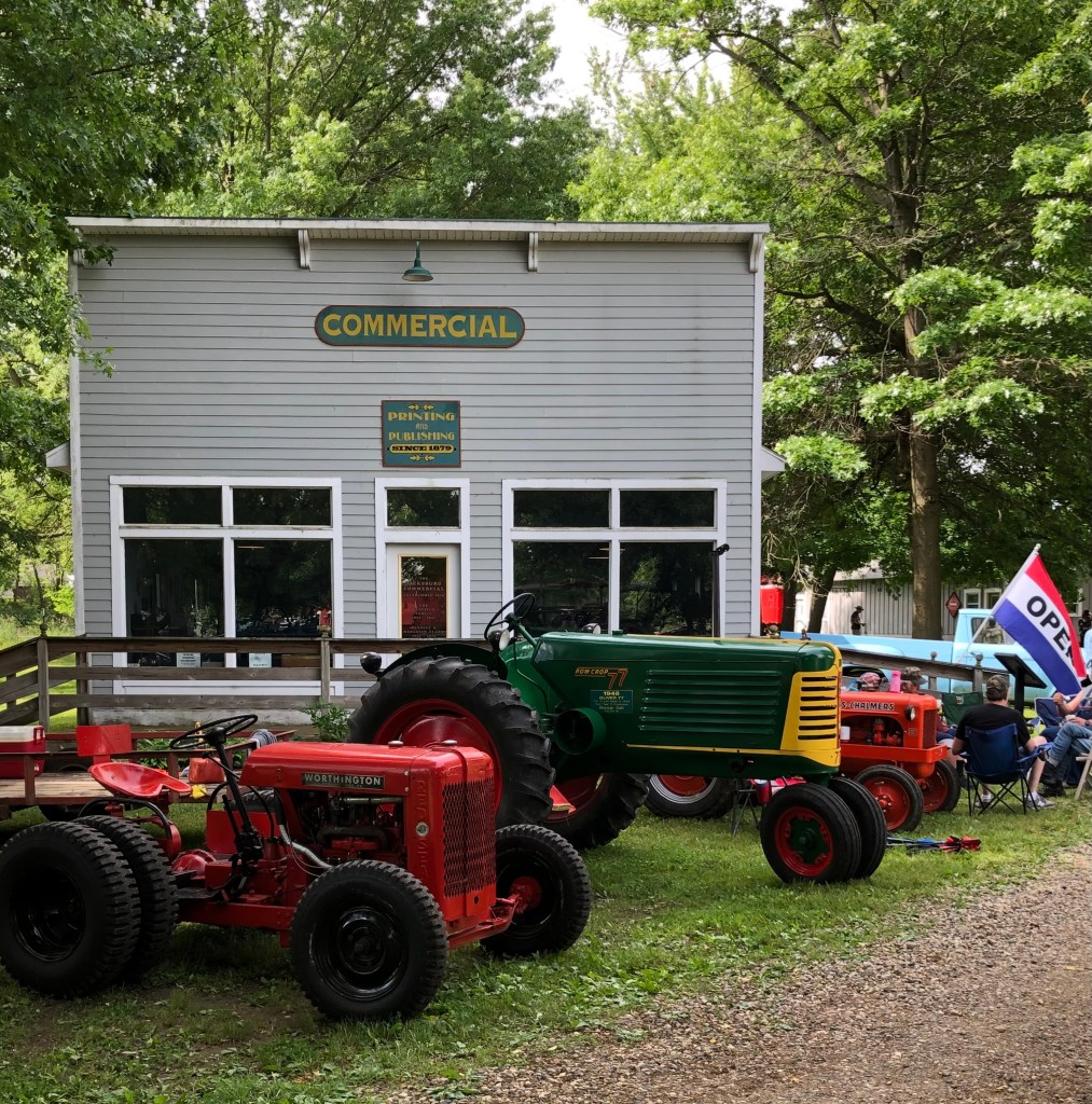 Tractors on display and the farmstead in the Vicksburg Historic Village. The Historic Village will soon be bustling with community activities.