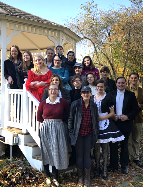Cast members and backstage workers, 18 in all, were led by Director Melissa Sparks. The students used the buildings and grounds of the Historic Village as a backdrop in presenting the real-life Clue game to the public. The whodunnit included costumed students playing the parts of Clue characters Scarlet, Plum, White, Green, Peacock and Mustard, providing clues to the audience to help them solve the murder in Boddy Manor.