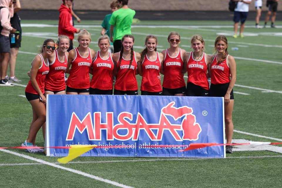 After a competitive season, members of Vicksburg’s track and field team continued to shine at the state competition. The 4×100 relay team of Megan Zahnow, Megan Kendall, Sam Richardson and Emma Steele earned All-State honors and placed 5th with a season-best 51.31. This is the second-fastest time in the school’s history.