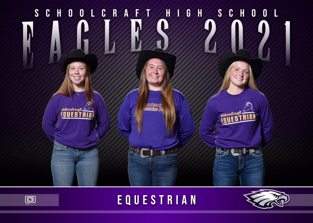 Equestrian Clara Ledlow, Faith Westfall, Brooklyn Hamelink Not pictured: Mariah Flynn and Riley Reed, Coaches Christine Rosey, Rylie Damm and Morgan Hamelink Photo credit: Visual Sports Network