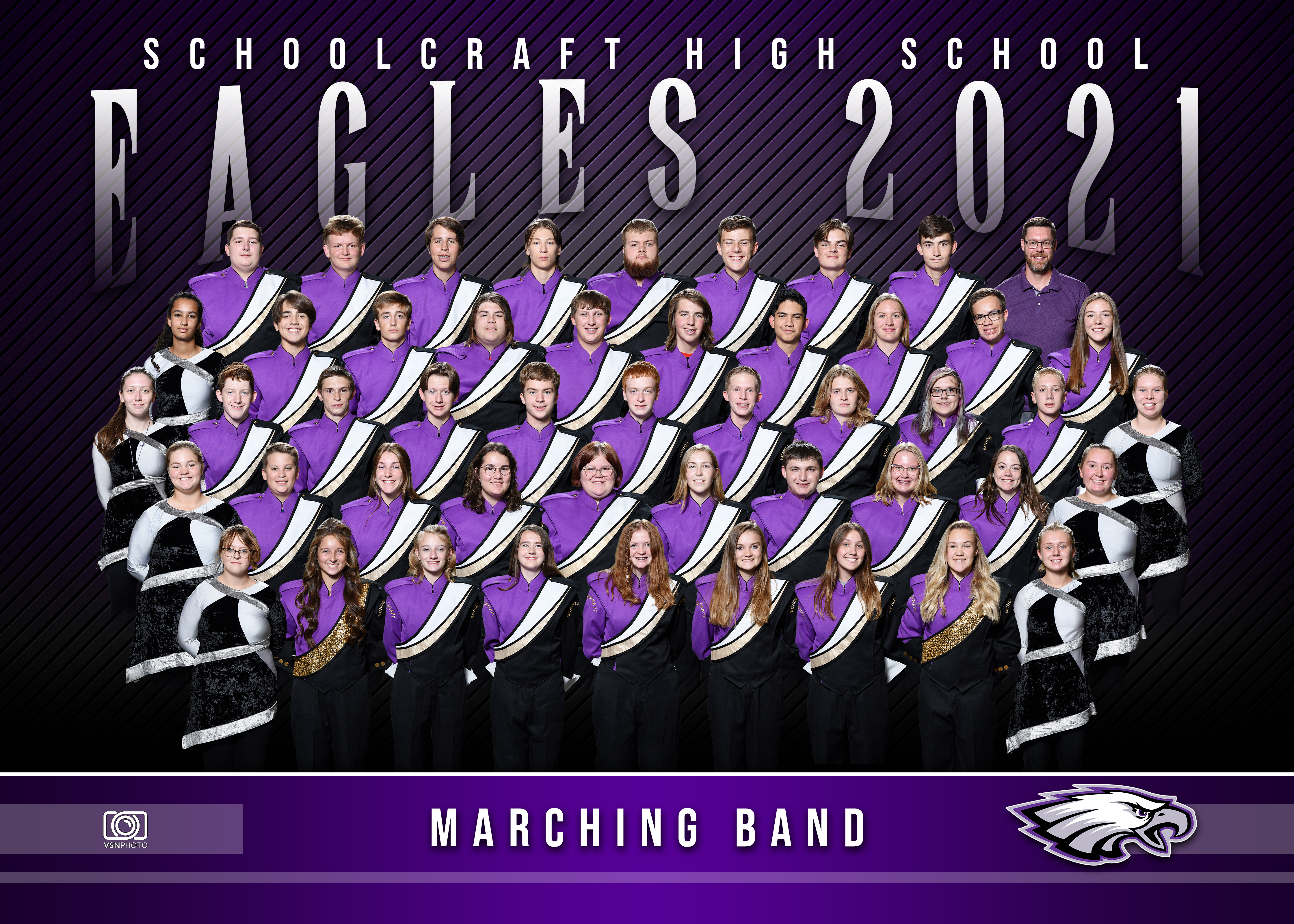 Marching Band Front row: Alyssa McMillan, Olivia Pavlak, Abby Hulinek, Lauren Shane, Kelsei Rossman, Alayna Meade, Carrisa Reiber, Catie Wright, Riley Danner Second row: Brenna McDonald, Warren Bailey, Brenna Crofoot, Sara Harrington, Em McMillan, Emma Peterson, Justin Parker, Addison Haley, Kerstin Rhoades, Faith Westfall Third row: Brynleigh MacInnes, Mike McGehee, Rylan Osborn, RJ Whaley, Keegun Weiler, Brayden Kroetsch, Hunter Barkalow, Annika Munson, Garret Dzierzyc, Dylan Danner, Danielle Watterson Fourth row: Sophie Orton, Jackson Parker, Kalib Lipscomb, Riley Zimmerman, Cole D. Bailey, Lukas Rinderspacher, Alex Betancourt, Megan Dykema, Sam Miller, Heidi Sheen Back row: Jesse Keim, Riley Reed, Logan Rinderspacher, Corban Piorkowski, Ian McDonald, Simon Sheen, Lucas Hamelink, Remy Kasten, Band Director Paul Stanton Photo credit: Visual Sports Network
