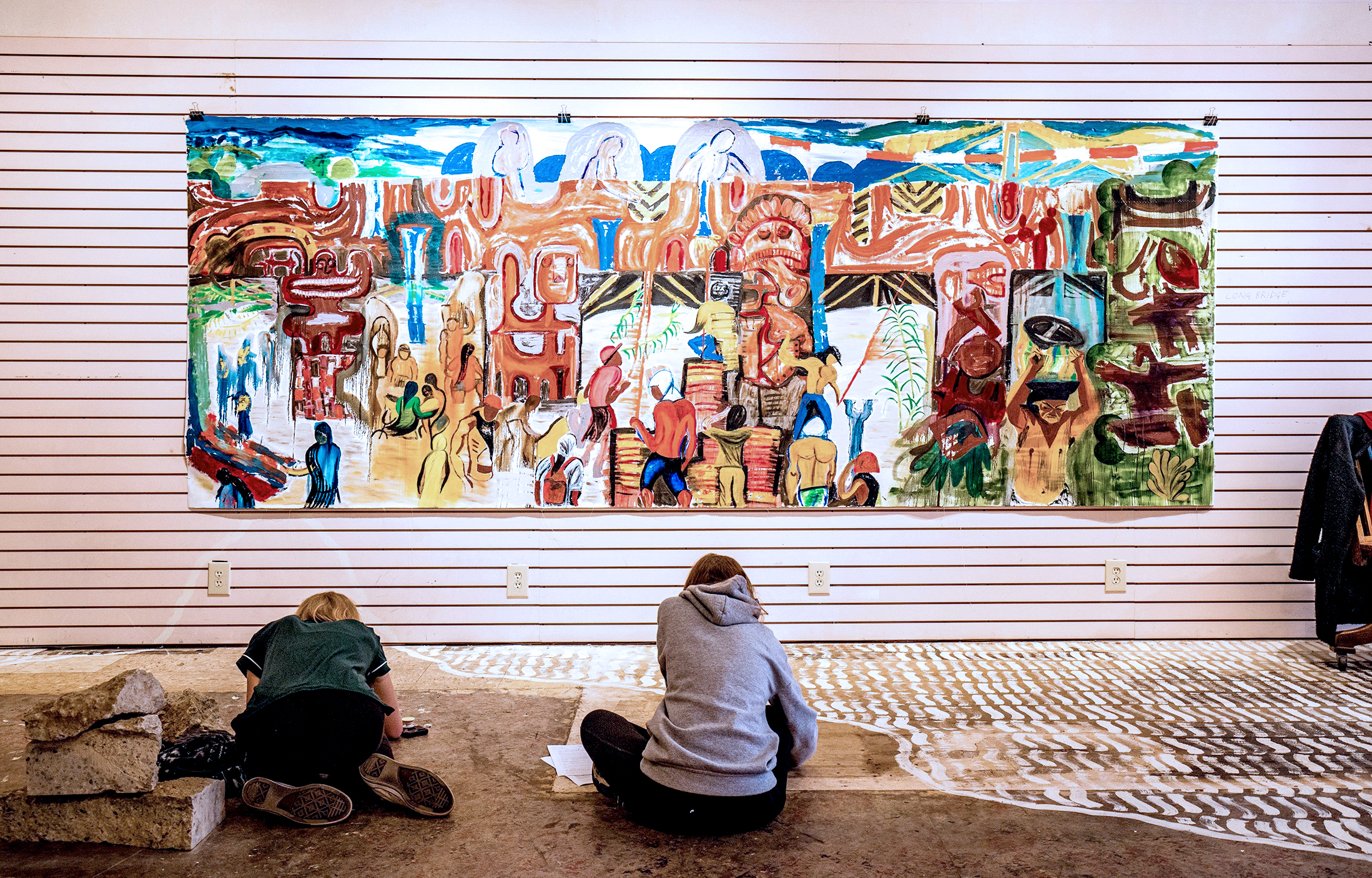 In addition to the exhibits and online presentations, students from the Vicksburg High School Spanish and Advanced Placement Art programs participated in a field trip to experience Destination Venezuela. They visited the exhibits and interacted with two of the artists, Natalya Critchley and Héctor Fuenmayor. One of the most compelling parts of this field trip for many of the students was the Tattoo Art exhibit, with each featured design from Cicatriz Venezuela telling the difficult story of intense, personal experiences of life of those living in the current political and societal tumult of Venezuela. Sammy Arepas was able to return for the students to experience the Venezuelan flavors as well.