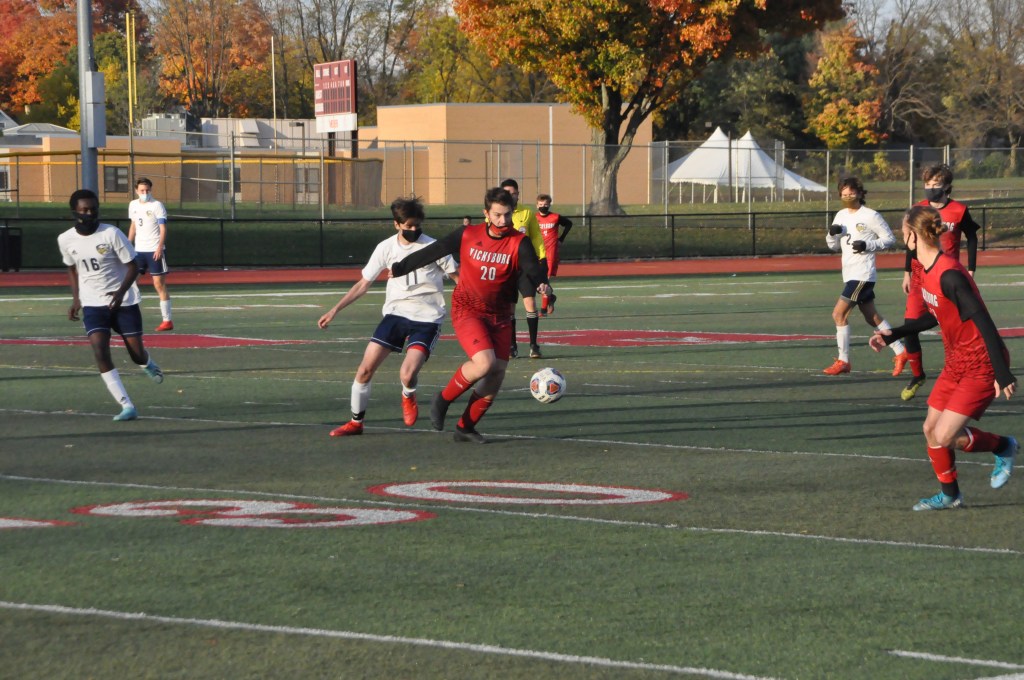 The Vicksburg varsity soccer team dominated Niles in their District matchup on home turf to end the season. Unfortunately, the Bulldogs simply couldn’t convert many shot opportunities into points and the Vikings just barely escaped with a 2-1 win.