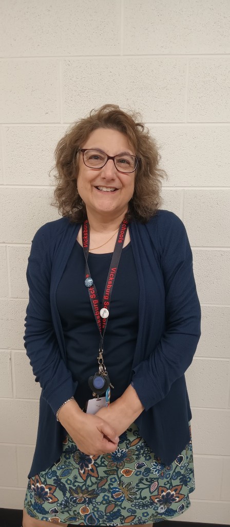 Susan Pepps, a 15-year Indian Lake Elementary teacher. The first-grade teacher said she loves all the teachers, students, principals (past and current) and staff. “I appreciate everyone’s sacrifice to make our district and Indian Lake the best that they are. I am a very proud teacher and grateful to be here in Vicksburg.”