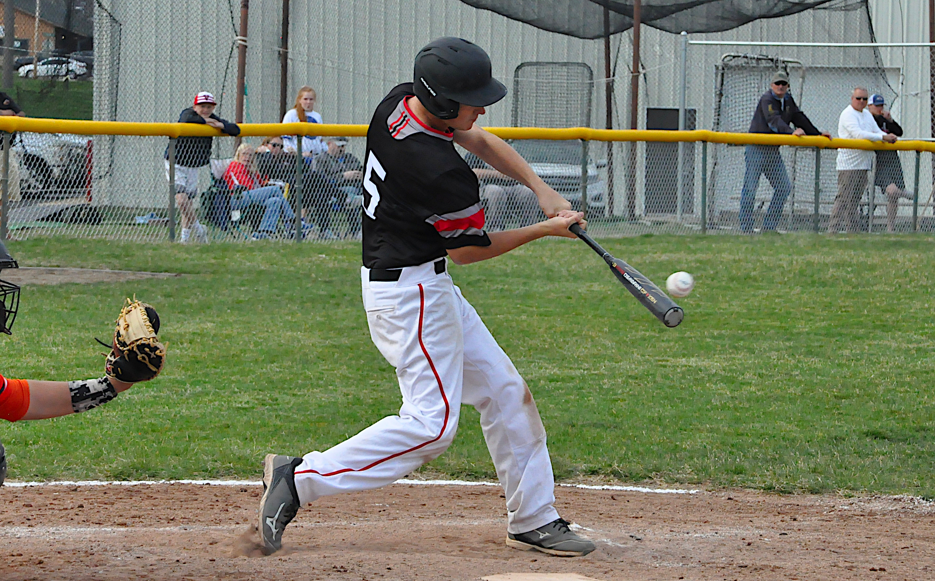 David Benedict makes good ball contact while batting for the Bulldogs. Photo by Travis Smola.