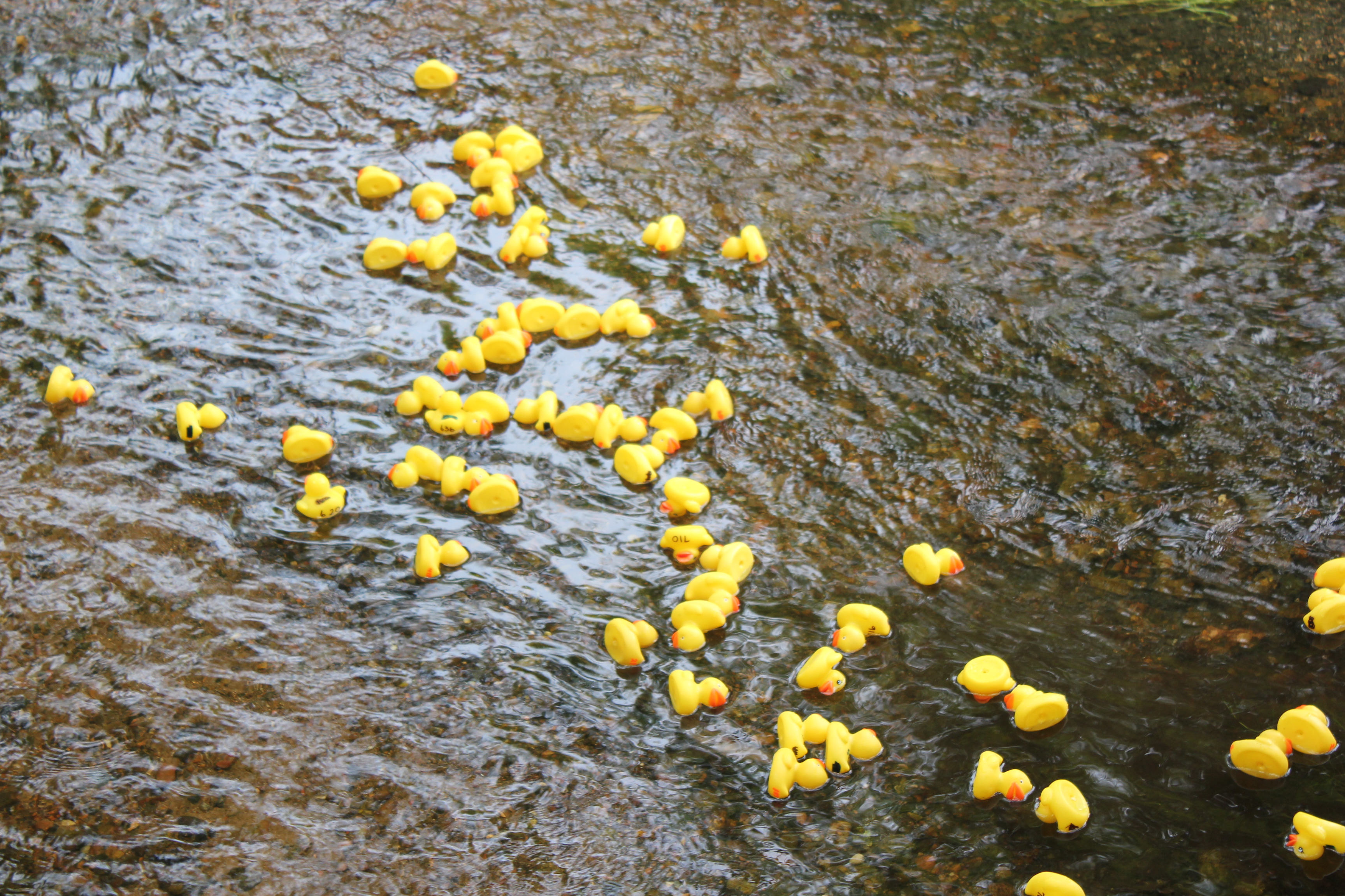 The first heat jets off at 12 p.m. with several more to follow because there are hundreds of tickets sold throughout the school and to the public. The tickets are $5 bucks each and can be purchased from the Foundation’s booth on Prairie Street on Saturday before the race. It’s a fundraiser for the School Foundation and yet provides plenty of thrills as the rubber ducks represent one ticket sold, getting caught up in the weeds along the way or a curve in the creek that winds through Clark Park.
