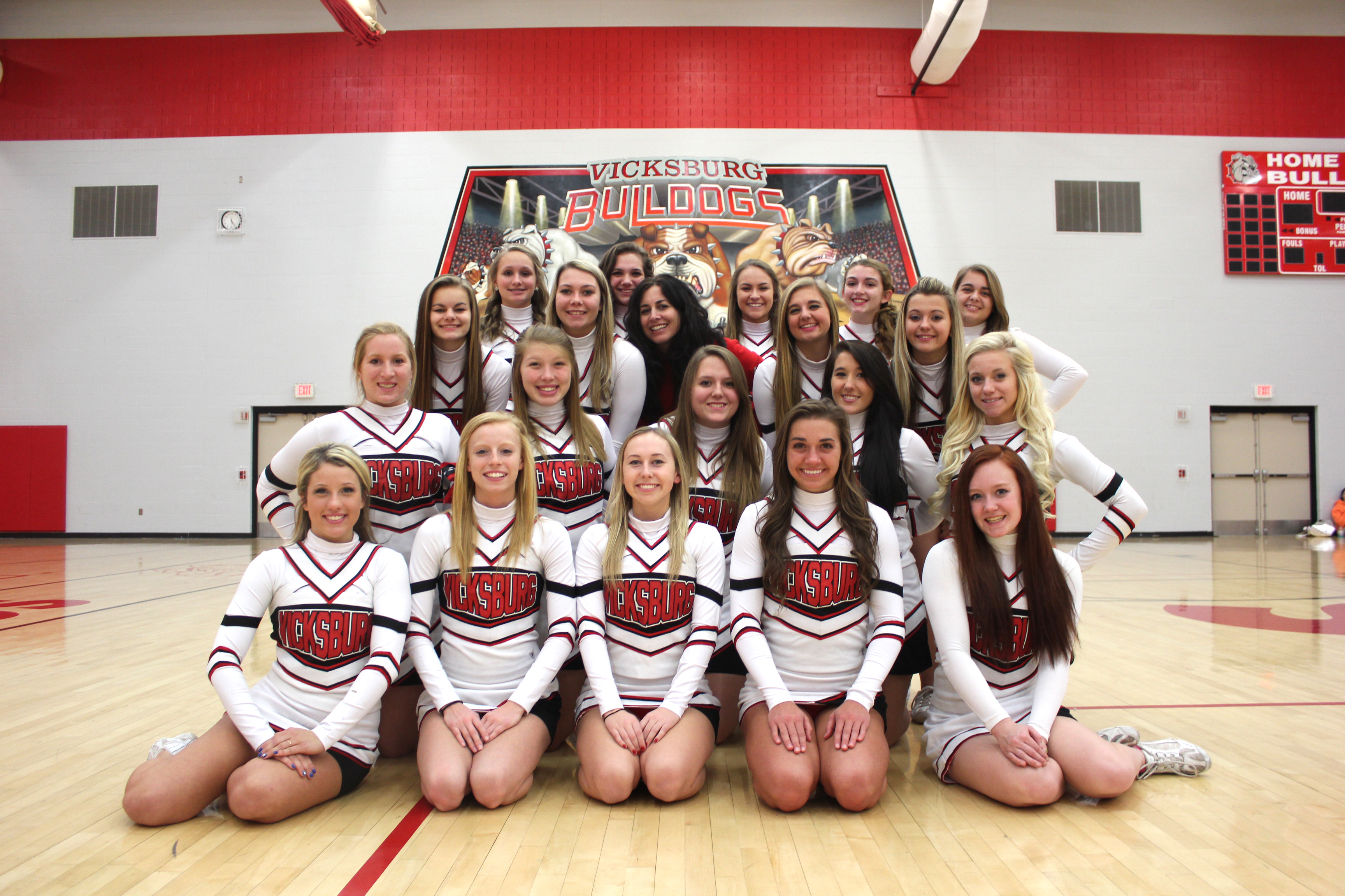 Competitive Cheer Kneeling from left to right: Cayla Klimach, Ciera Rance, Sarah Stasik, Kacey VanDerBos, Hailey Klingele. Second row standing from left to right: Dori Mulder, Madalynn Ludy, Whitney Dinzik, Kelsey Gettles, Brooke Bowers. Third row standing: Lauren Geesaman, Britany Warner, Coach Stacy Childs, Hailey Davis, Kaiyleigh Van Atti. Back row from left to right: Megan Kanerman, Makayla Peacock, Meredith Moore, MacKenzie Davis, Taylor Grigg.