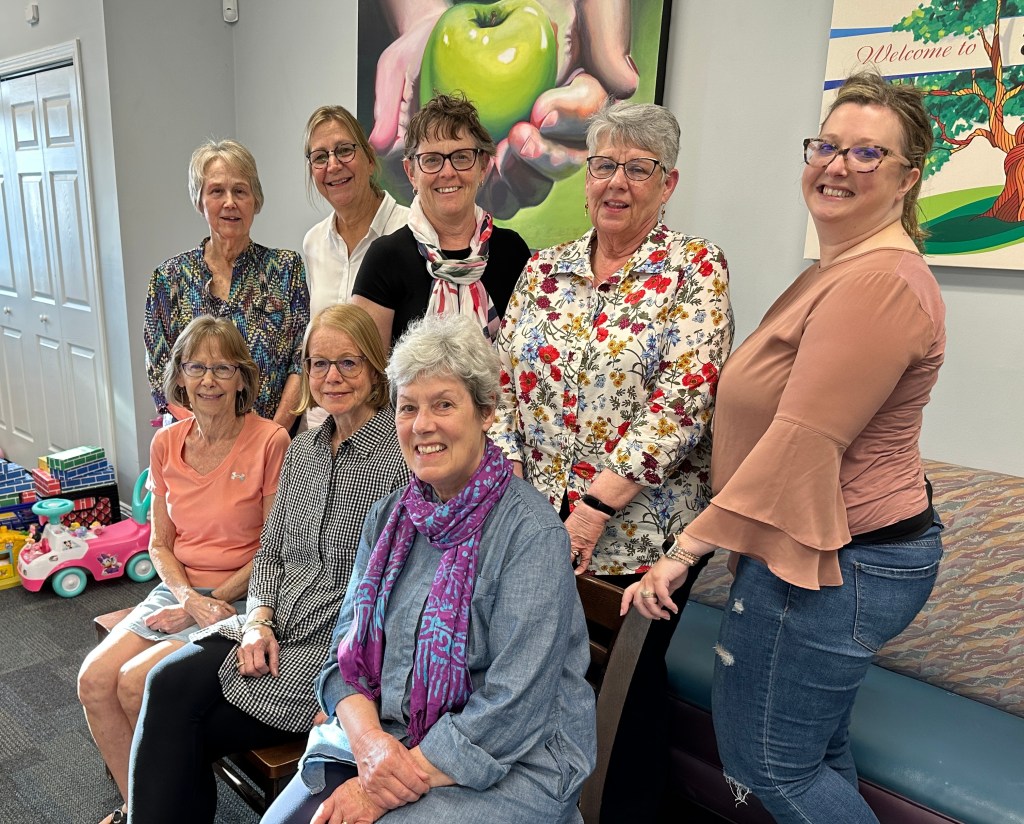 Front row from left: Sandy Welch, Sheri Louis, Kay Anderson; back row from left: Danna Downing, Madeleine Fojtik, Paula Schriemer, Anne Liggett, volunteer Emily Russell; not pictured: Jan Modderman-Hui, Carole Conley-Boal, Brittany Hagen