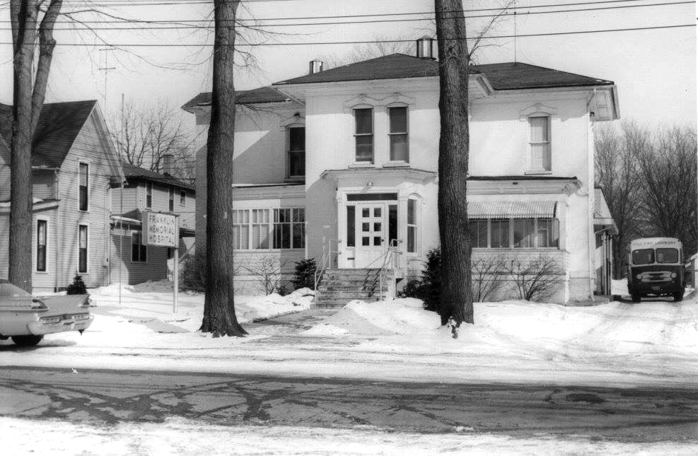 Just south of the railroad tracks on North Main Street is the former site of the Franklin Community Hospital. Once the home of Mr. and Mrs. Peter Franklin, the hospital served the needs of the community until 1969, when it was replaced by a modern facility on Boulevard Street, west of town. That’s now Turning Leaf Behavioral Health Services.